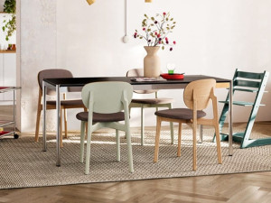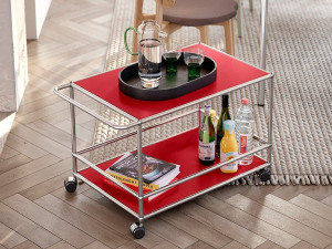 Аксессуары, которые объединяют систему USM Haller E для оформления гардеробных, например, поручень для подвешивания одежды и серию контейнеров USM Inos Box из полиэстера. Хранилище USM Haller для детской комнаты идеально подходит в качестве хранилища для спальни. Прикроватные тумбочки UMS Haller Night Table и USM Haller Nightstand завершают меблировку спальной зоны, также доступны в детской версии. Для жилой зоны, в дополнение к вышеупомянутым книжным шкафам и модулям для хранения вещей, USM предлагает столы USM Haller, которые благодаря линейной форме и элегантной отделке идеально вписываются в любой стиль мебели. Таким образом, это обеденный стол, а также низкий столик для беседы с журнальным столиком USM Haller или элегантным журнальным столиком USM Kitos круглой формы.