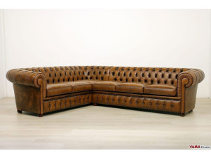 VAMA Стеганый угловой диван из кожи Chesterfield