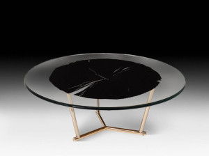 VGnewtrend Круглый журнальный столик из дерева и стекла Foresta