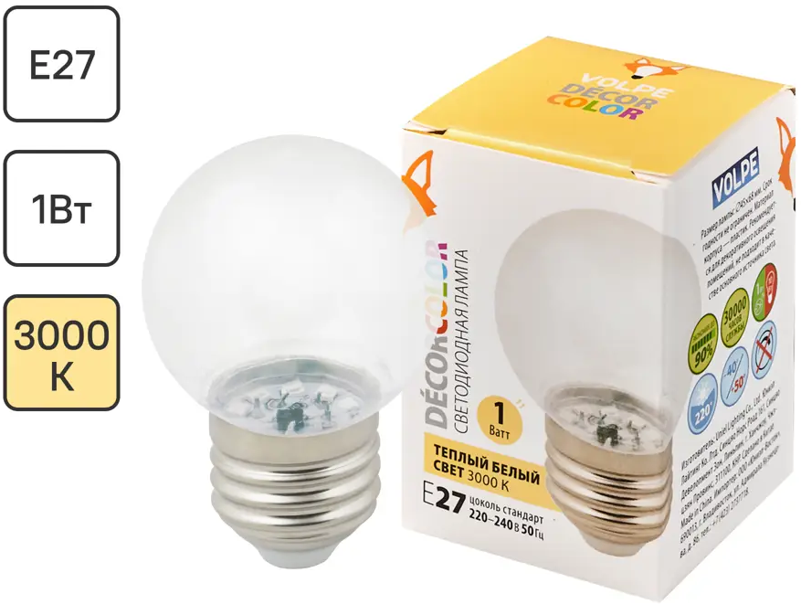 Светодиодная лампа Volpe E27 шаровая матовая 1Вт теплый желтый свет 82422144