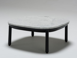 Низкий квадратный журнальный столик из ясеня с мраморной столешницей