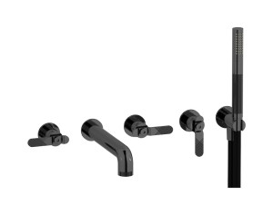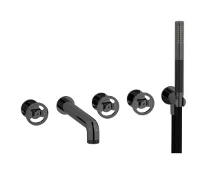 Настенный смеситель для ванной на 5 отверстий с дивертером и душевым гарнитуром. WE ARE IB b1398cs Brushed Black Chrome Bold