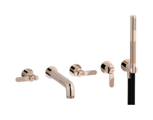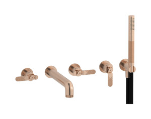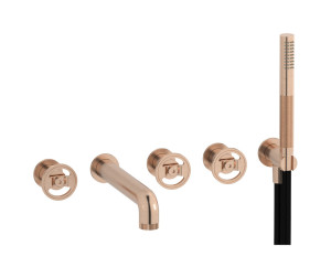 Настенный смеситель для ванной на 5 отверстий с дивертером и душевым гарнитуром. WE ARE IB b1398sr Brushed Rose Gold Bold