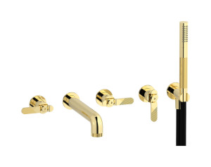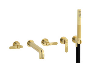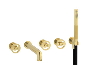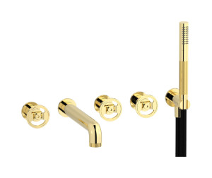 Настенный смеситель для ванной на 5 отверстий с дивертером и душевым гарнитуром. WE ARE IB b2398ii Pale Gold Bold