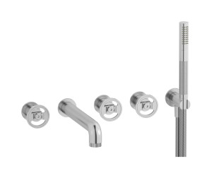 Настенный смеситель для ванной на 5 отверстий с дивертером и душевым гарнитуром. WE ARE IB b2398cc Chrome Bold