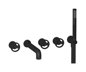 Настенный смеситель для ванной на 5 отверстий с дивертером и душевым гарнитуром. WE ARE IB b1398np Matt Black Bold