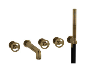Настенный смеситель для ванной на 5 отверстий с дивертером и душевым гарнитуром. WE ARE IB b2398on Natural Brass Bold