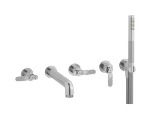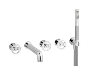 Настенный смеситель для ванной на 5 отверстий с дивертером и душевым гарнитуром. WE ARE IB b1398cc Chrome Bold
