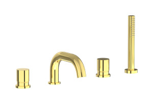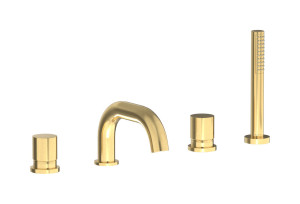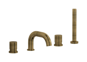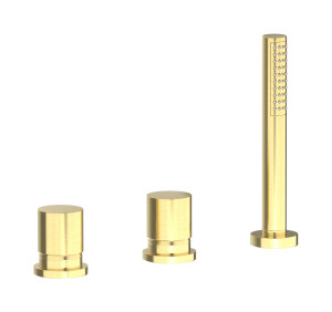 Смеситель на бортик ванной на 4 отверстий с дивертером и душевым гарнитуром. WE ARE IB rr396os Brushed Gold Brera