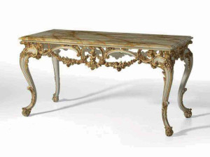 Лакированная консоль с мраморной столешницей в стиле барокко
