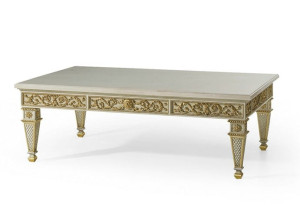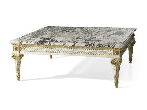Лакированный прямоугольный журнальный столик с мраморной столешницей