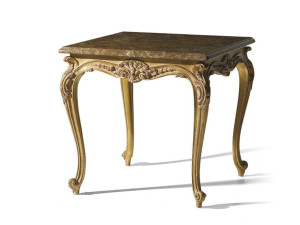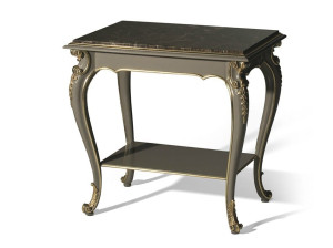 Лакированный деревянный журнальный столик с мраморной столешницей