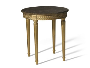 Круглый журнальный столик с золотым листом и мраморной столешницей