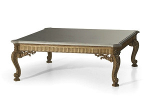 Журнальный столик с золотым листом с мраморной столешницей