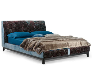 Двуспальная кровать из ткани с мягким изголовьем