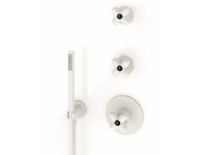 0384B+0384A Встраиваемый смеситель для ванны/душаручки переключатель с закрытием, на 2 потока с поворотной кнопкой ручная лейка FIT шланговое подсоединение с держателем для ручной лейки гибкий шланг 150 см ПВХ впуски 1/2'' Звукоизолированные Fantini Rubi