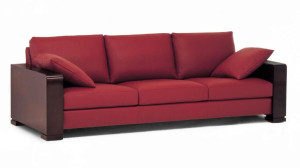 Кожаный диван с журнальной стойкой
