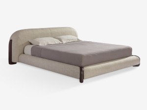 Мягкая кровать из кожи и бархата с высоким изголовьем