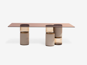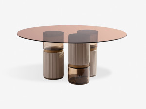 Круглый стол со стеклянной столешницей с кожаными и стеклянными основаниями