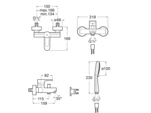 Открытый смеситель для душа с ручным душем