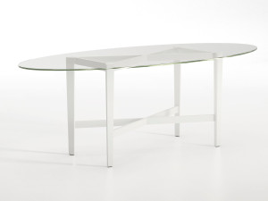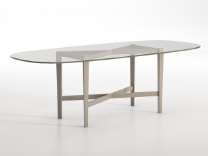 Овальный стол с хрустальной столешницей и основанием из бука