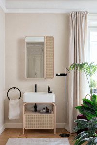 MASPRE-NA Прямоугольный зеркальный шкафчик. Корпус из ясеня в отделке крашенный в черный цвет и передней правой дверцей из венской соломы в отделке натуральная cielo Marcel