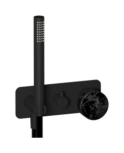 Внешние части встроенного в стену смесителя на 2 потребителя в комплекте с душевым гарнитуром. WE ARE IB mr313np_2 Matt Black Marmo