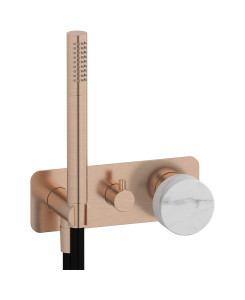 Внешние части встроенного в стену смесителя на 2 потребителя в комплекте с душевым гарнитуром. WE ARE IB mr313sr_2 Brushed Rose Gold Marmo