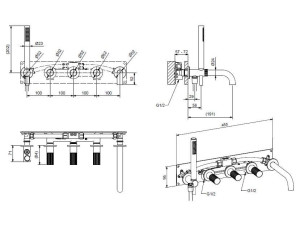 Хромированный латунный кран с 4 отверстиями