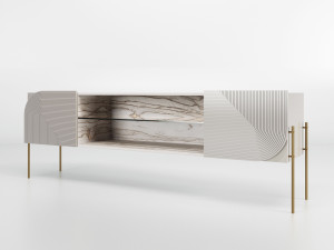 Низкий деревянный шкаф для телевизора с распашными дверцами