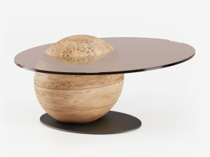 Деревянный и стеклянный овальный журнальный столик