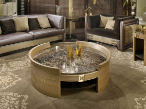 Мраморный круглый низкий журнальный столик
