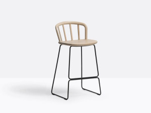 Высокий табурет из ясеня с мягким сиденьем