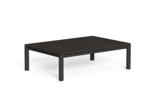 Прямоугольный низкий журнальный столик из керамогранита с алюминиевым основанием