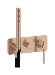 Внешние части встроенного в стену смесителя на 2 потребителя в комплекте с душевым гарнитуром. WE ARE IB oh706cs Brushed Rose Gold Soho