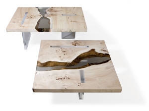 Журнальный столик / табурет из массива дерева и смолы
