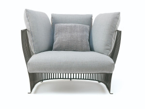 Тканевое и алюминиевое садовое кресло с подлокотниками