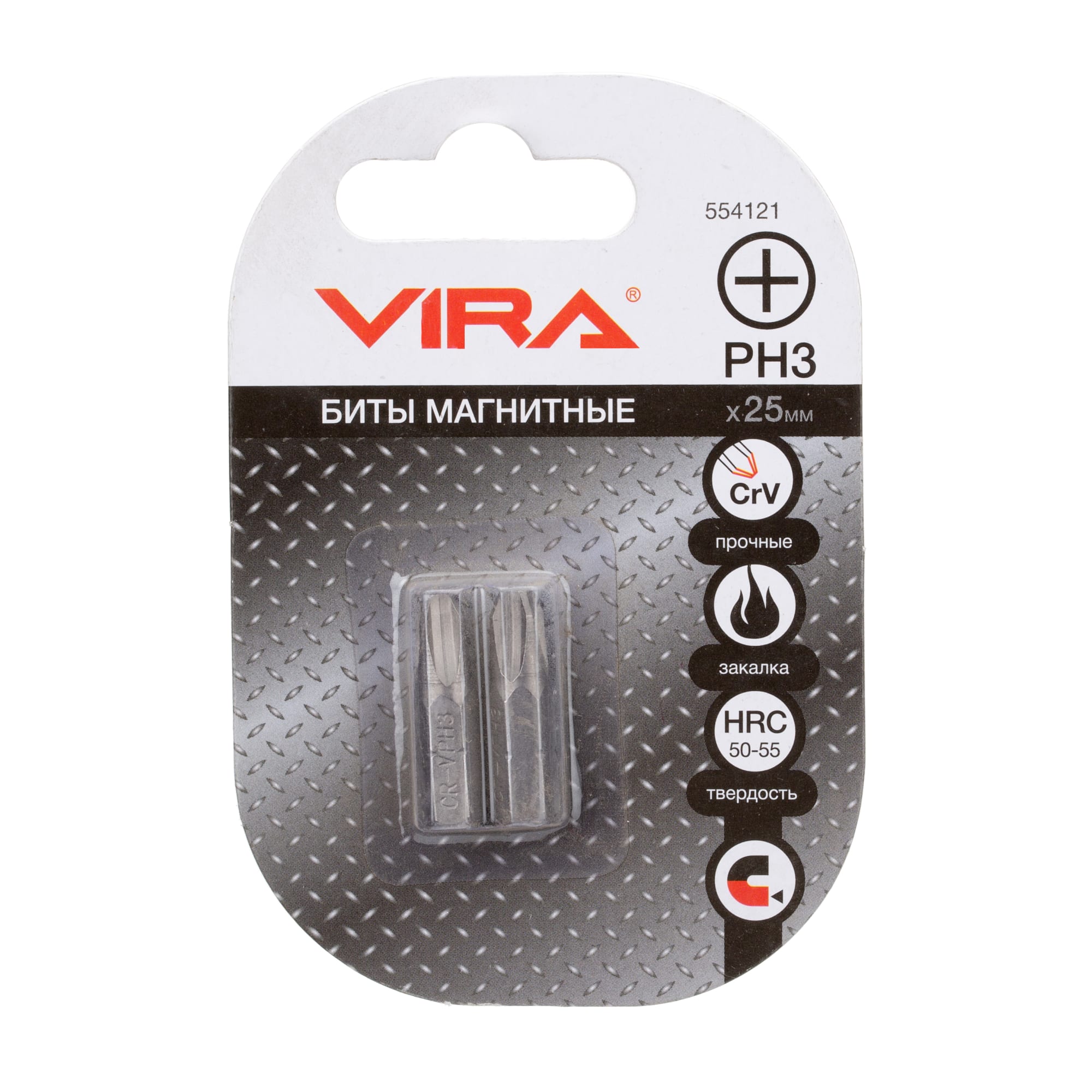 Набор из двух крестовых бит PH3 от VIRA обеспечивает точное и быстрое выполнение монтажных работ. Каждая бита длиной 25 мм оснащена магнитным наконечником для удобства использования.