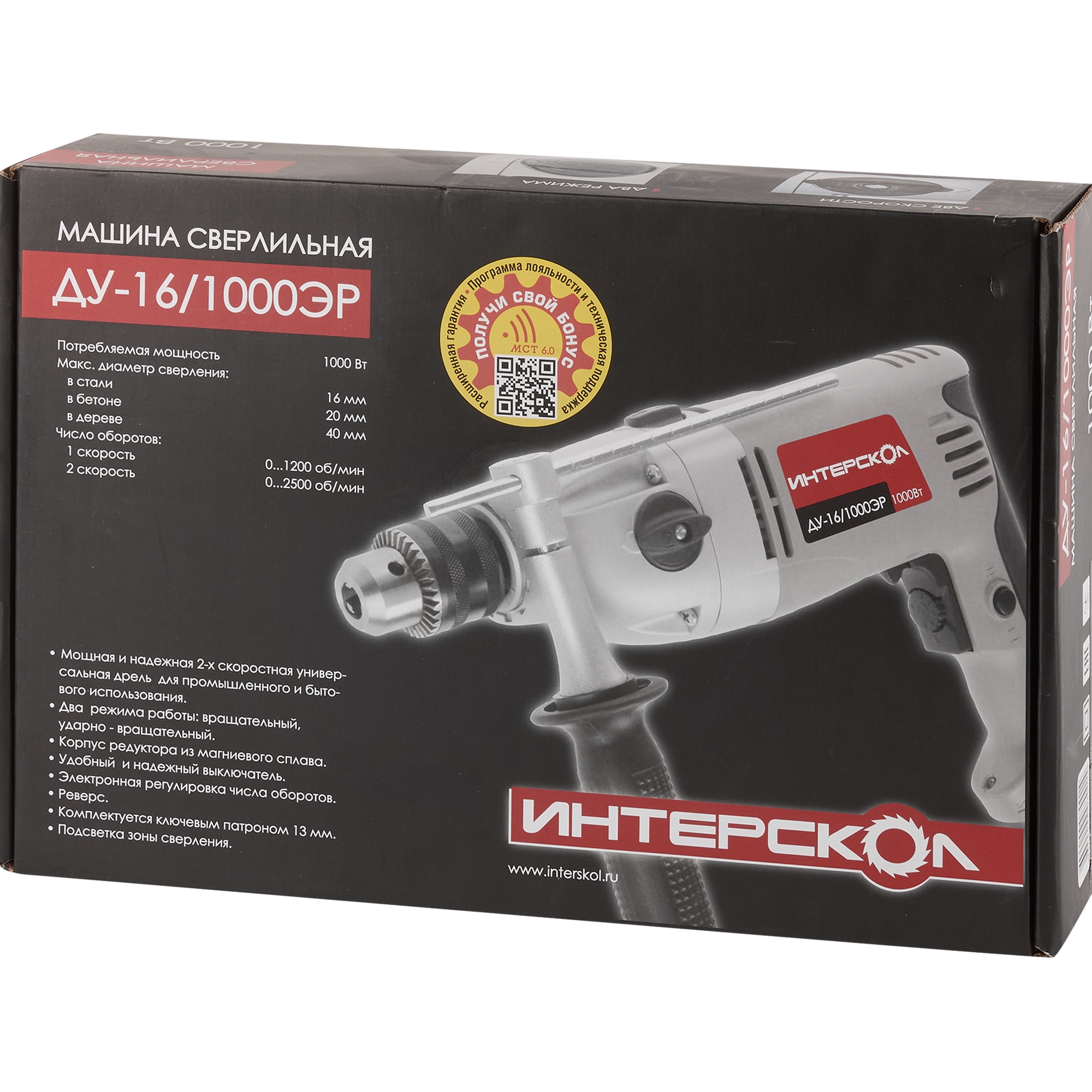 Ударная дрель Интерскол ДУ-16/1000ЭР с регулировкой оборотов 11751707 STLM-0001475