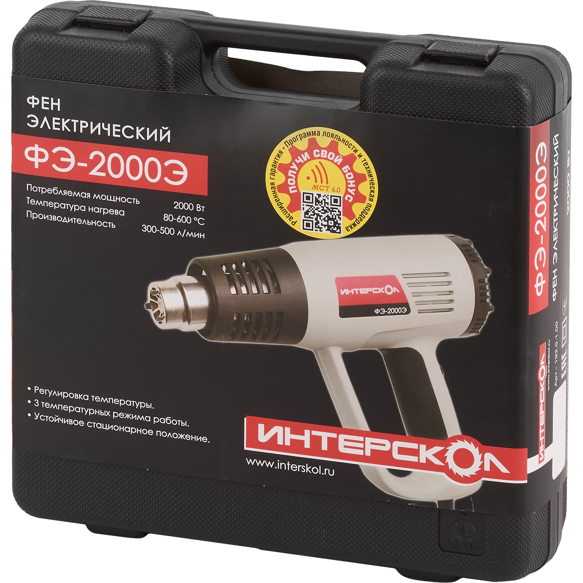 Технический фен Интерскол ФЭ-2000Э с регулировкой температуры 60-600°С 12276450 STLM-0001877