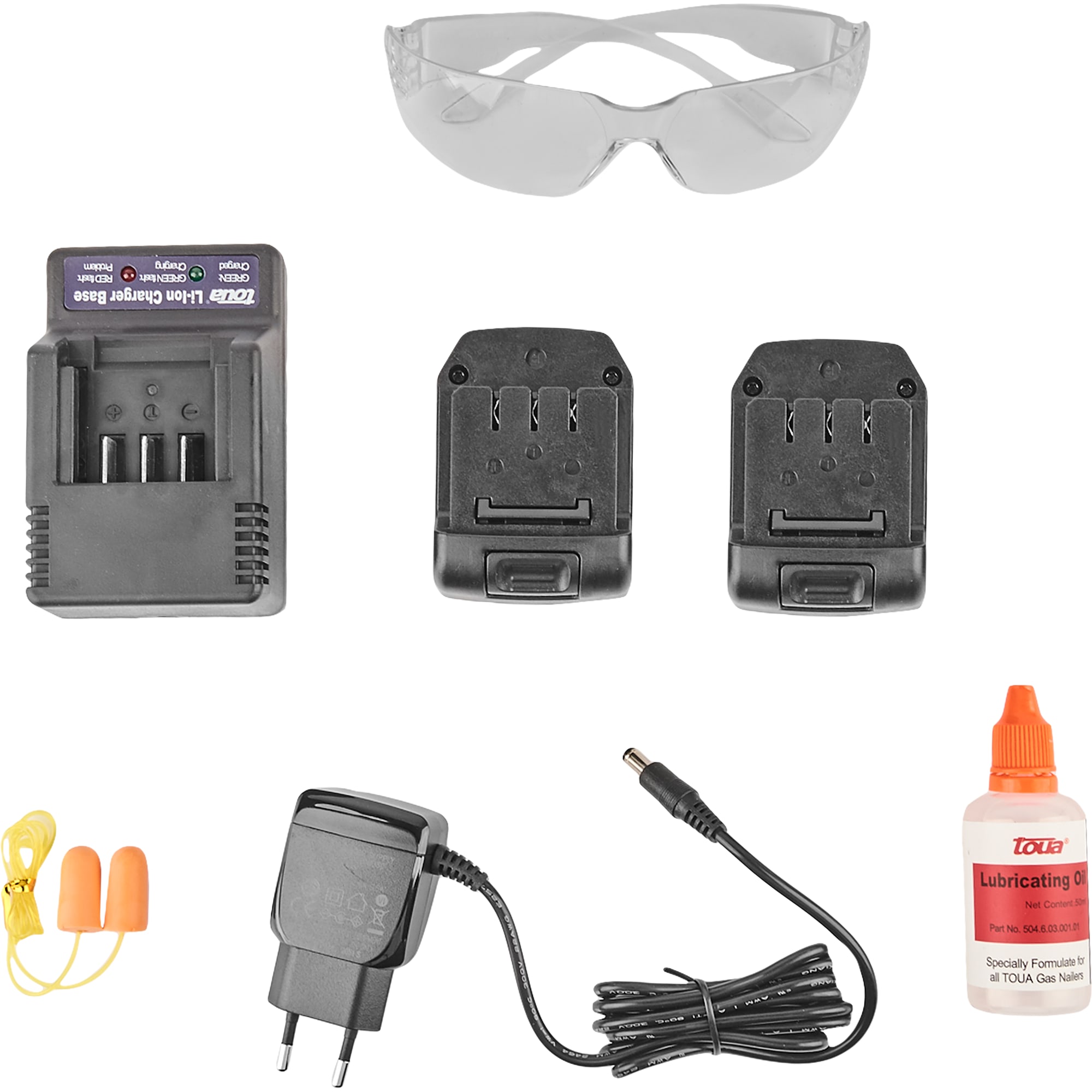 | Аксессуары в комплекте | Нейлер -1 шт, Аккумуляторная батарея -2 шт, Зарядное утсройство-1, адаптер AC-DC - 1 шт, Кейс пластиковый -1 шт, Мягкая насадка на ствол- 1 шт, Инструкция -1 шт |