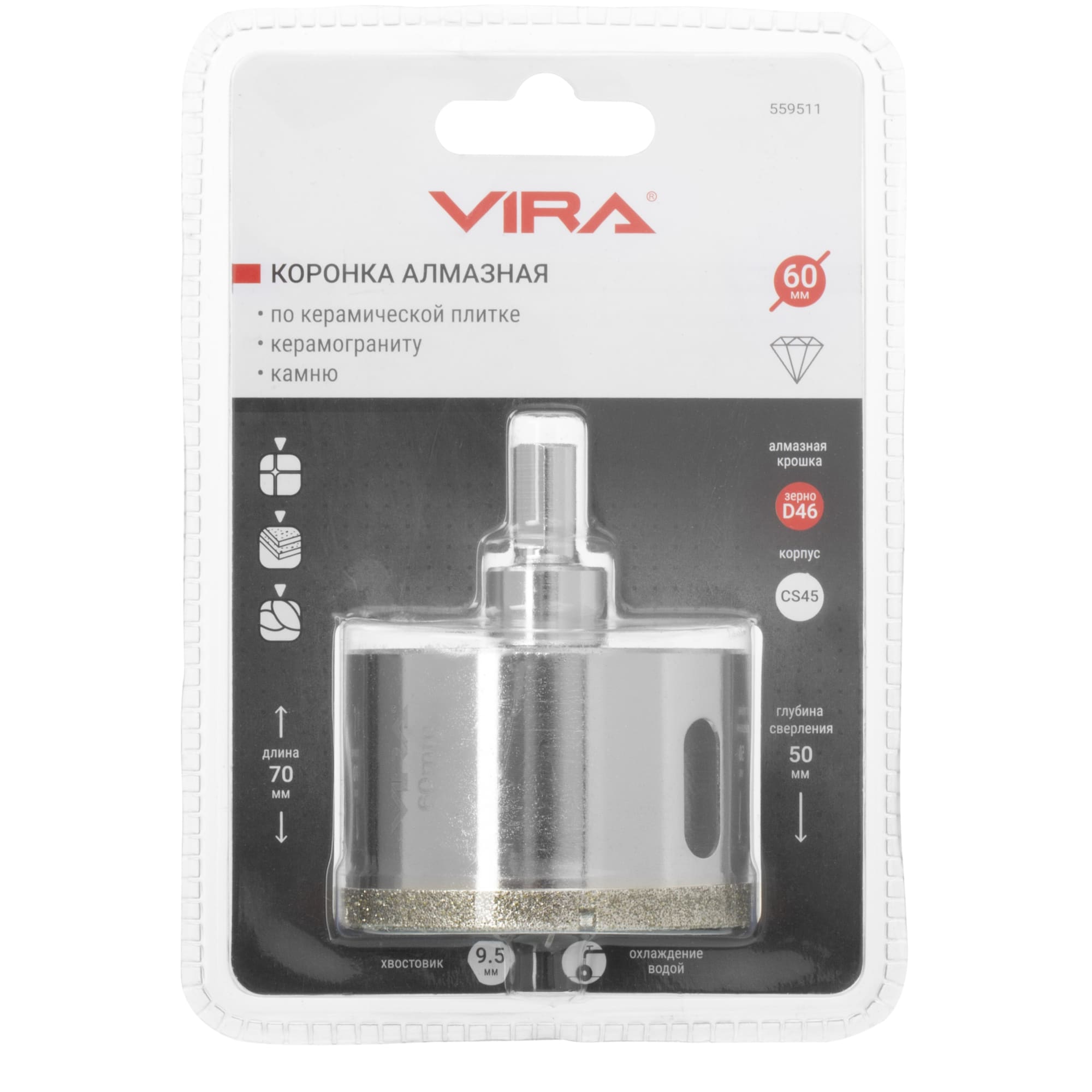 Алмазная коронка VIRA 60 мм для керамогранита и плитки 84721426 STLM-0054026