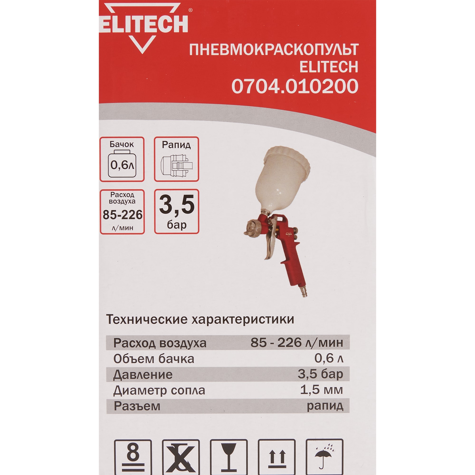 Пневматический краскораспылитель Elitech с регулировкой факела 84552393 STLM-0051860