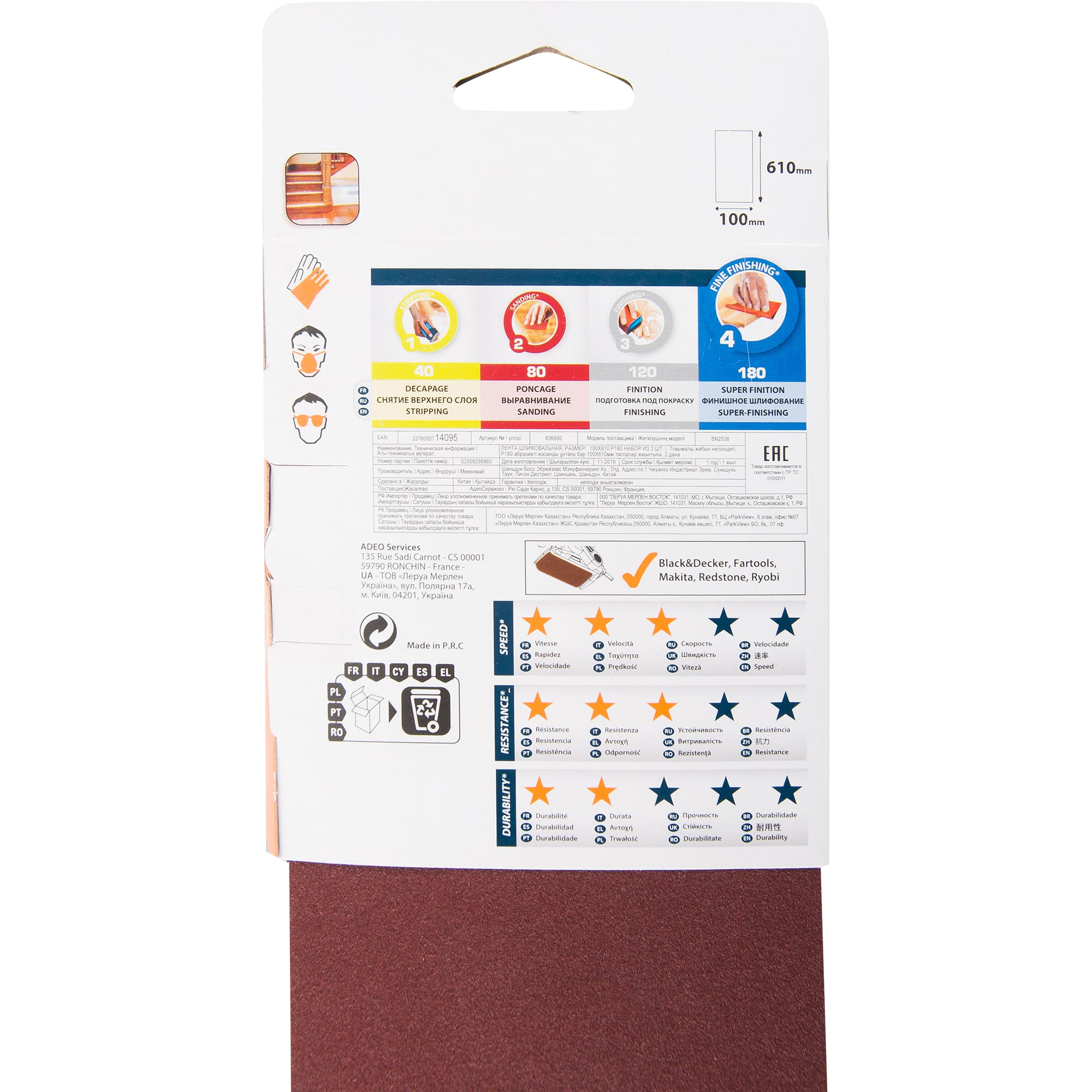 82307199 Лента шлифовальная Dexter P180 610x100 мм, 2 шт. STLM-0024327