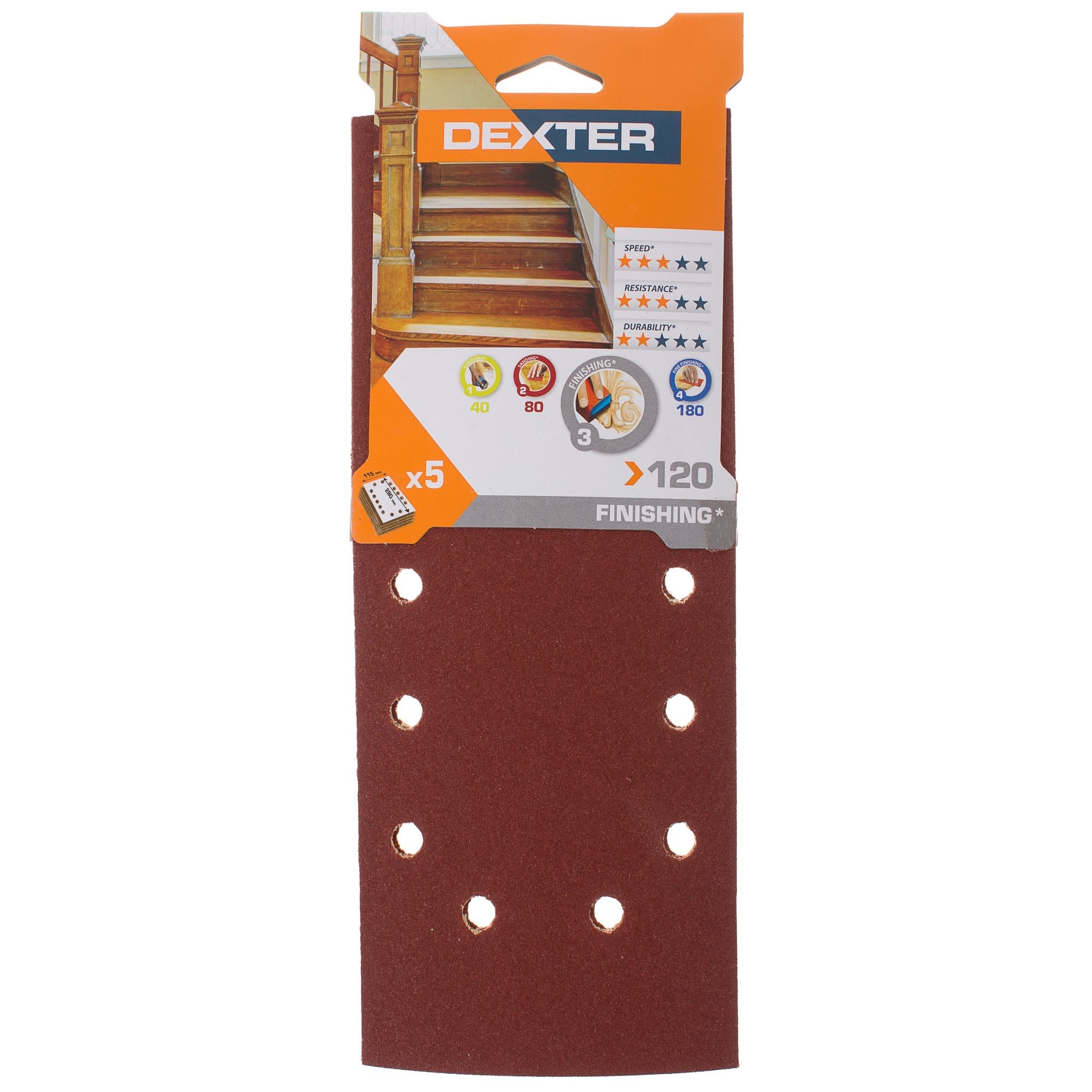 DEXTER Шлифовальные листы P120 для вибрационной машины 115х280 мм, 5 шт 18783795 STLM-0012666