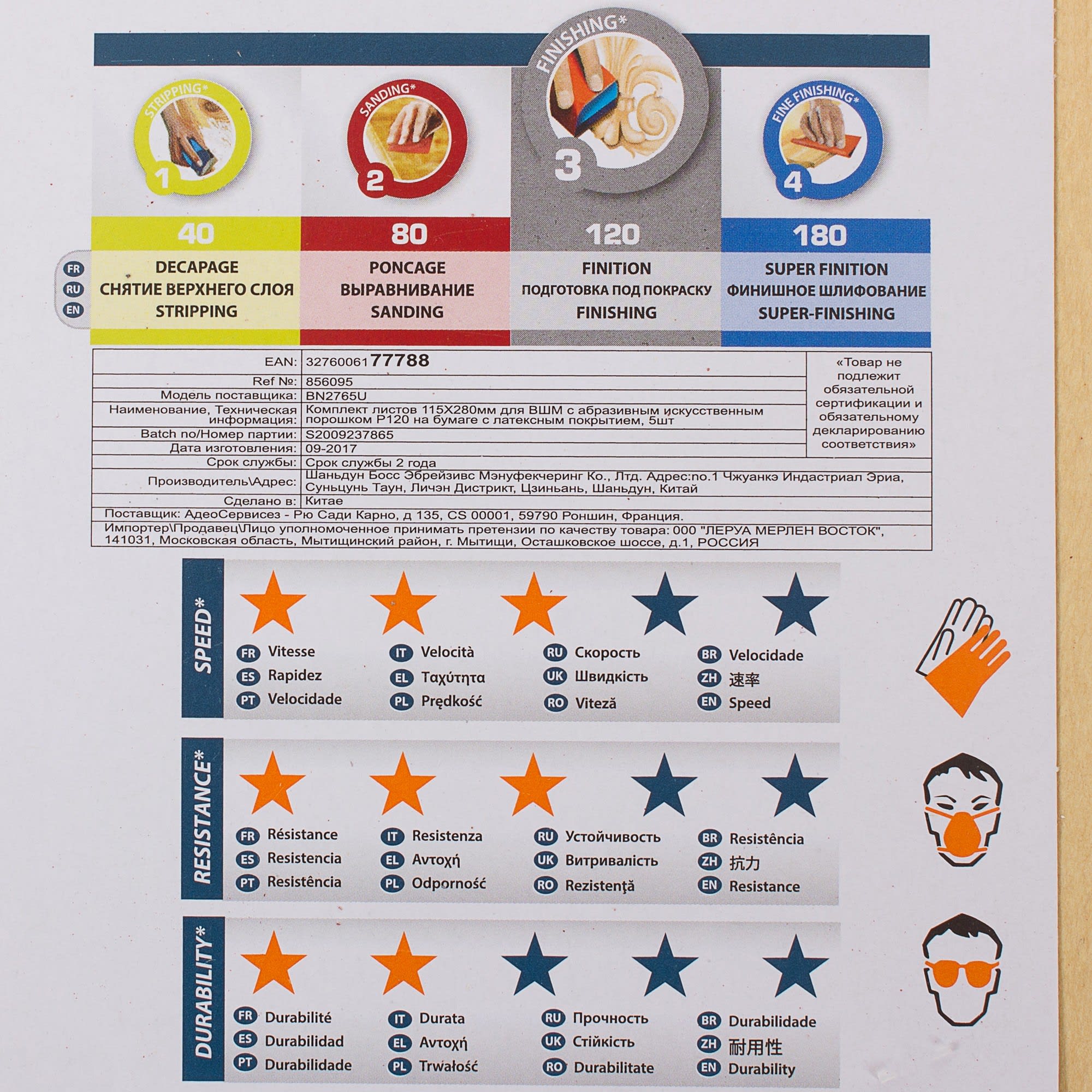 • Зернистость P120 оптимальна для начальной стадии шлифования