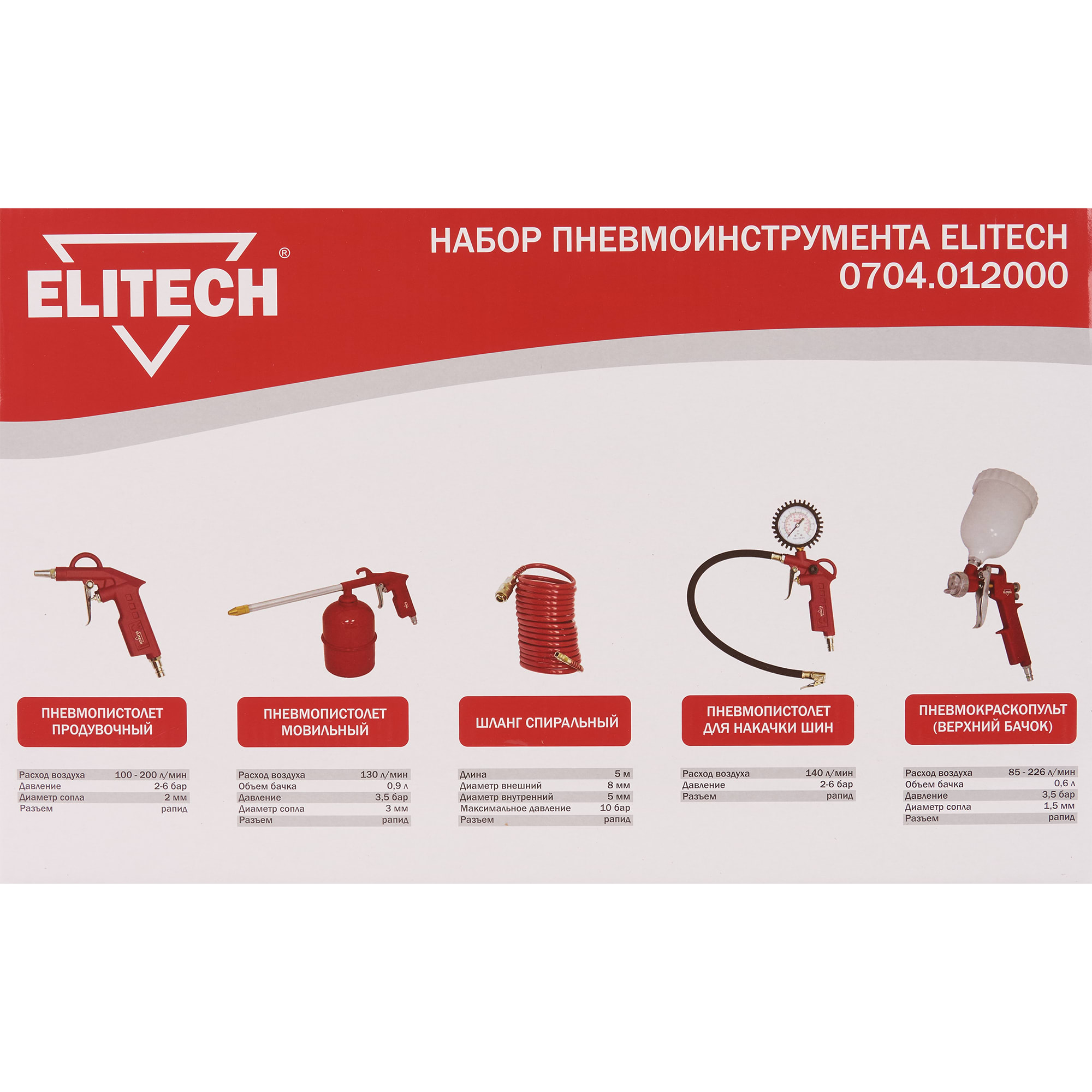 Пневматический набор Elitech STLM-0051867: 5 профессиональных инструментов 84552511