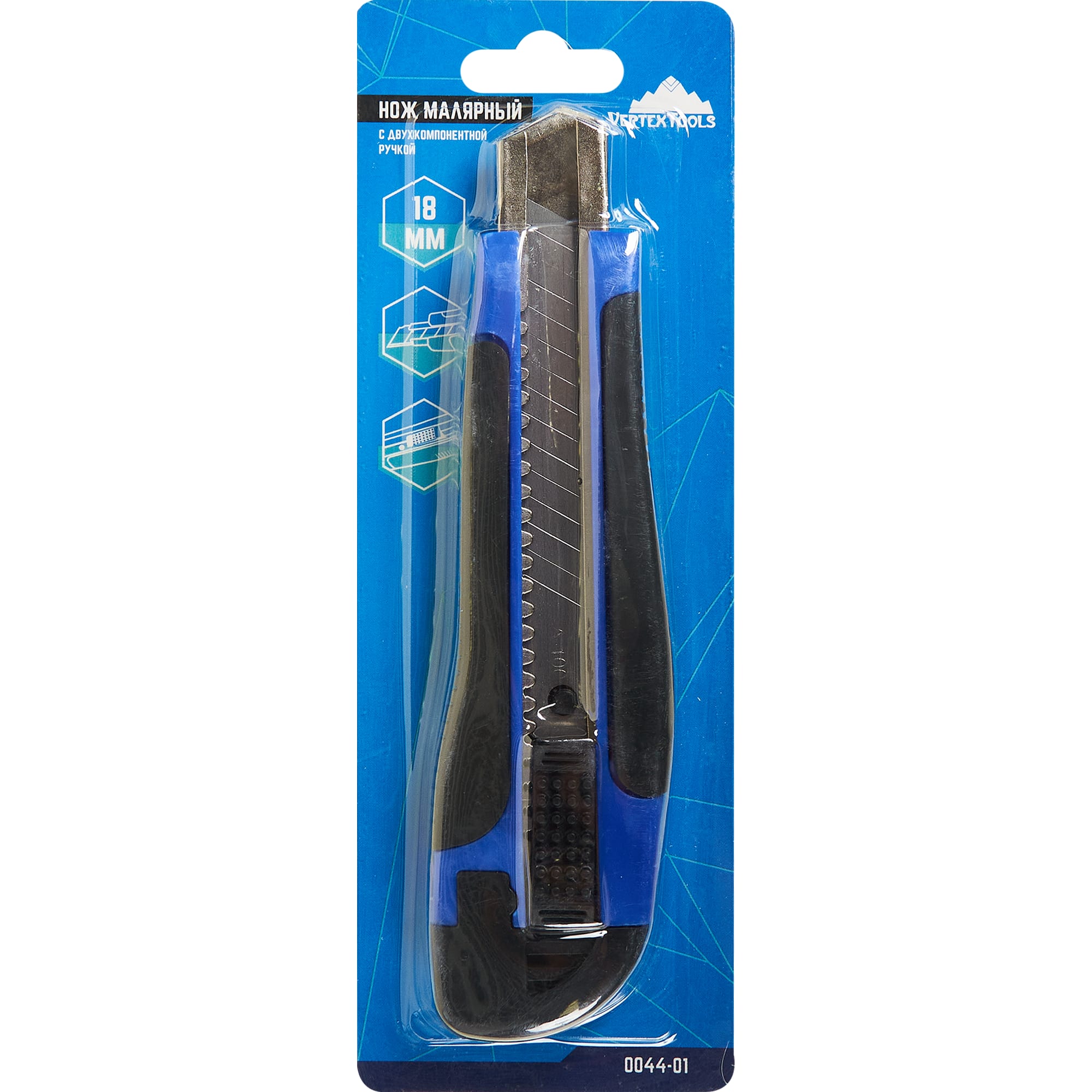 Строительный нож Vertextools с противоскользящей рукояткой и сегментным лезвием 18 мм 84657014 STLM-0053271