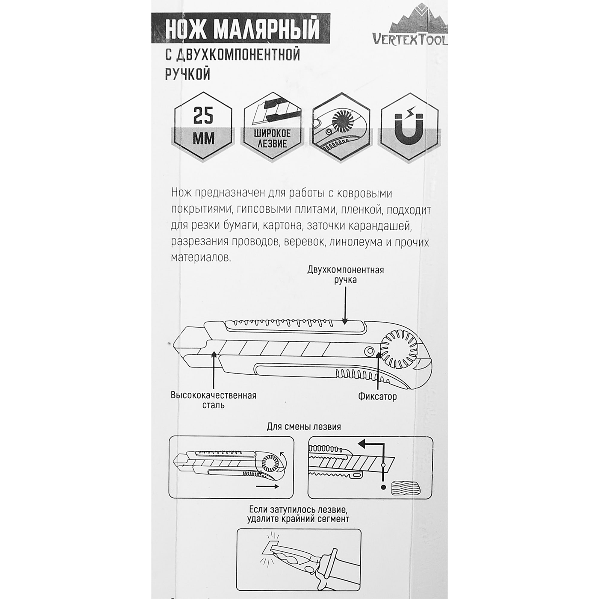 | Модель продукта | Нож малярный с 2-х комп. руч. 25мм |