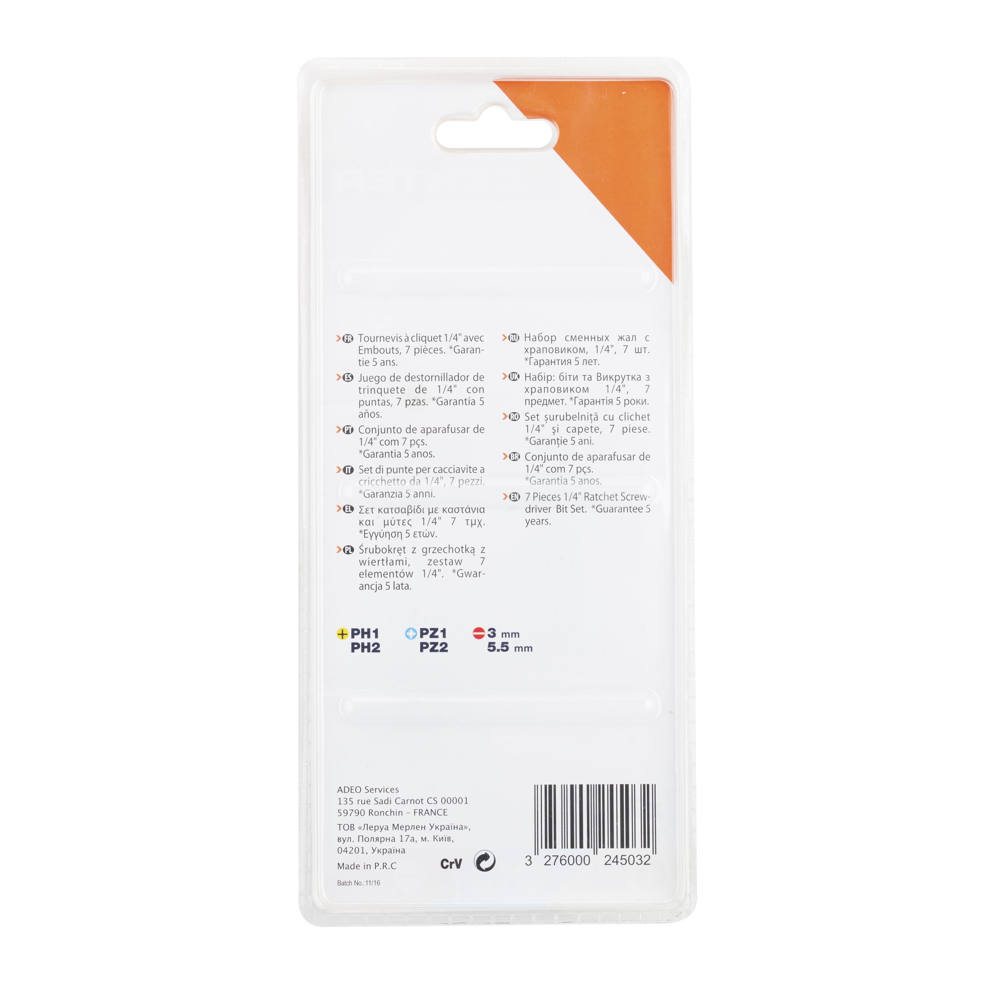| Состав комплекта | Отвертка с набором бит, SL3.5, SL5.5, PH1, PH2, PZ1, PZ2 |